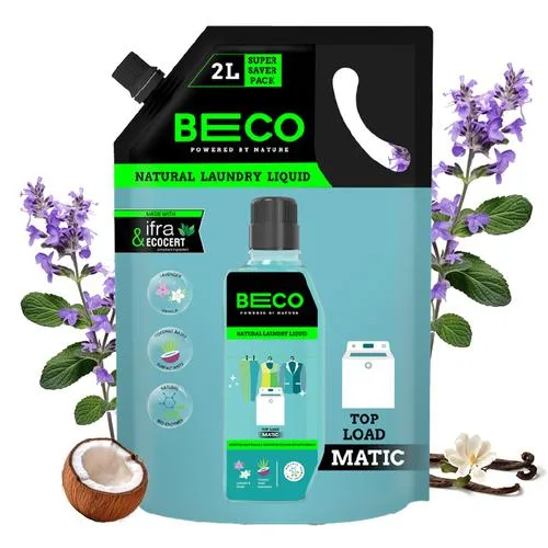 Beco Natural Liquid Detergent Top Load – 2L Refill Pack | Tough Stain Removal | Lavender & Vanilla Freshness | Retains Brightness & Shine | Chemical Free | Top Load Washing Machine Detergent Liquid