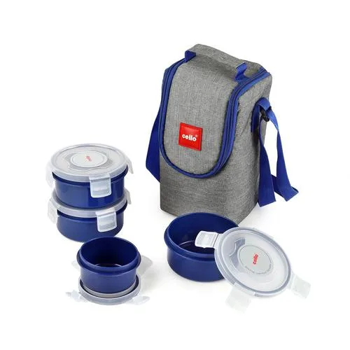 CELLO MF Click Polypropylene Lunch Box Set, 300ml, 4-Pieces, Blue