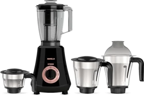 Havells Hydro Plus 1000 Watt Mixer Grinder 4 Jar Mixer Grinder |1.75L Break-Resistant Blending Jar | 304 Ss Rust-Resistant Blades | 22000 Rpm High-Speed Motor | 5-Year Motor Warranty (Black)