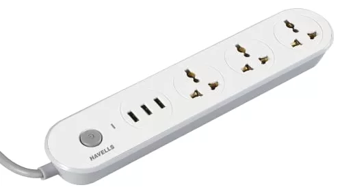- 3 Universal Sockets and 3 USB Ports: The universal sockets in this Havells USB Star extension board accommodate various plug types, while the USB ports provide a convenient way to charge smartphones, tablets, and other USB-powered devices.