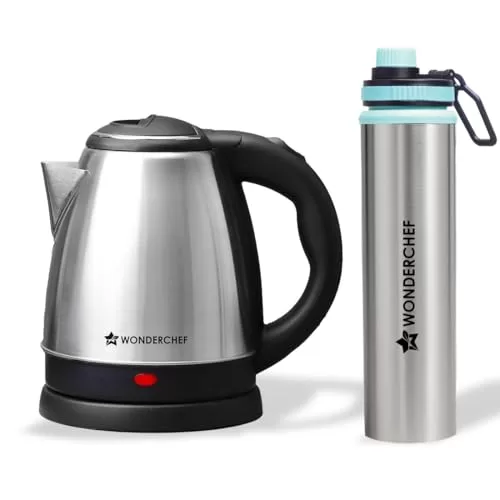Wonderchef Acura Stainless-Steel Kettle 1.5L + Sippy Stainless-Steel Bottle, Rapid Water Boiling In 4 Mins, Auto Shut-Off, Gift Combo For Diwali And Other Festivals, Housewarming | 2-Year Warranty is available on Amazon at best discounted online price. Original of this product is ₹ 2000.0. You can buy this product at discounted rate ₹ 699.